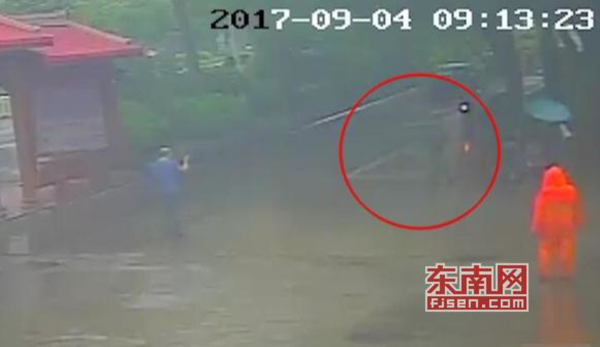 根据当时现场监控画面显示,4日上午9时7分,一辆巡逻车经过东园西路时突然停下。车上一名人员下车跑到王燕英所在位置。此时王燕英正坐在地上,身边有一名身穿白色衣服的男子站在一旁帮忙打伞遮雨。很快,王燕英就被搀扶着离开。