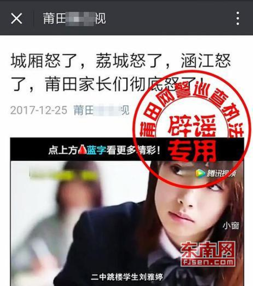 东南网莆田1月3日讯(本网记者 李妙珠 通讯员 黄蕾如)近日,为获取点击关注量,陈某、郑某某套用谣言视频,取名为《城厢怒了,荔城怒了,涵江怒了,莆田家长们彻底怒了!》《鲤城怒了、枫亭怒了、榜头怒了,仙游家长们彻底怒了!》,在莆田本地进行传播,误导市民,造成不良影响。目前,二人已被警方处以行政拘留五日。 东南网记者从莆田市公安局网安支队了解到,近期,一段视频备受自媒体运营者的青睐。该段视频内容很简单,即是将一则警方多次辟谣过的《二中跳楼学生刘雅婷写给全体教师的一封信》文章进行配音并加上大量网络图片制作而成。