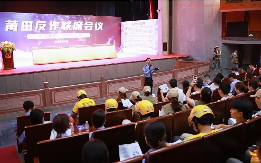 为深入贯彻落实习近平总书记重要指示精神,持续推进我市打击治理电信网络新型违法犯罪工作,策应6月15日中宣部、公安部联合部署“全民反诈在行动”集中宣传月活动,切实营造全社会反诈浓厚氛围。6月15日上午,莆田市打击治理电信网络新型违法犯罪工作联席会议暨“全民反诈”活动启动仪式在莆仙大剧院举行。市委副书记、市长林旭阳,市委常委、政法委书记郑加清,市政府反诈联席会议总召集人、副市长、公安局长陈文荣,市法院院长张果,市检察院检察长许志鹏,市政府党组成员、秘书长杨兴斌,市政府副秘书长、信访局局长翁良达等领导出席活动,市联席会议各成员单位负责同志,市人行及各银行金融机构主要负责人,各县(区)政府(管委会)主要领导、政法委书记、联席会议总召集人、召集人,各乡镇(街道)主要领导,公安机关有关警种部门领导、派出所所长和各行业反诈志愿者代表共计500余人参加活动。