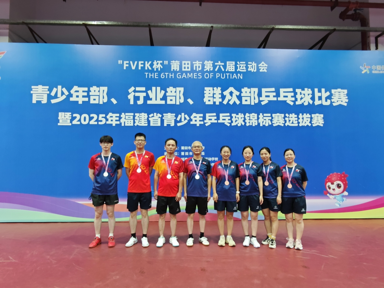 2025年6月25日,在莆田市人民政府主办,市体育局协办的莆田市第六届运动会乒乓球团体赛中,莆田市木兰惠生活服务有限公司员工吴宇航(左一)代表参赛队伍出战,凭借精湛球技与顽强拼搏精神,与队友默契配合,最终助力团队斩获团体二等奖,为公司赢得荣誉。